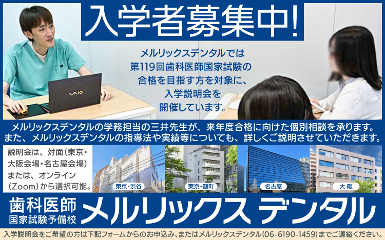 メルリックスデンタルでは第119回歯科医師国家試験の合格を目指す方を対象に、入学説明会を開催しています。