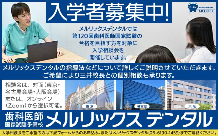 メルリックスデンタルでは第 120 回歯科医師国家試験の合格を目指す方を対象に、入学相談会(完全予約制)を開催しています。