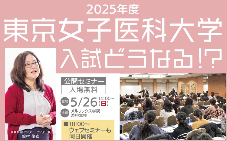 とくに東京女子医科大学につきましては、昨今のニュースで受験や教育体制にご不安の受験生・保護者の皆様に、大学担当者からおうかがいした最新情報をセミナー形式にてお届けします。