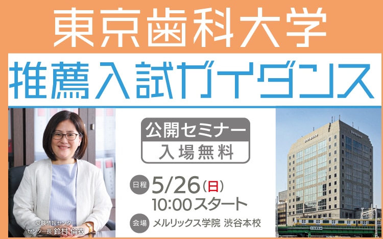 それに先立ち、東京歯科大学の推薦対策講座の開講ガイダンスとワンポイント講座をメルリックス学院渋谷校で開催します。